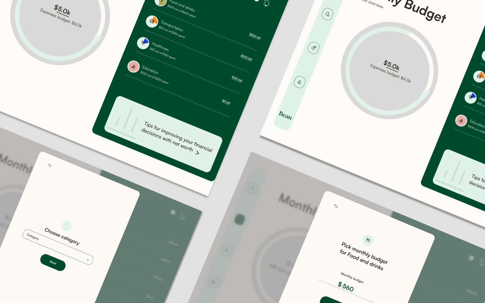 To maintain visual consistency and ensure a cohesive and user-friendly experience across all interfaces and interactions, I created a design system. Using green is often associated with money, wealth, and financial stability. It can evoke a sense of security, growth, and prosperity.